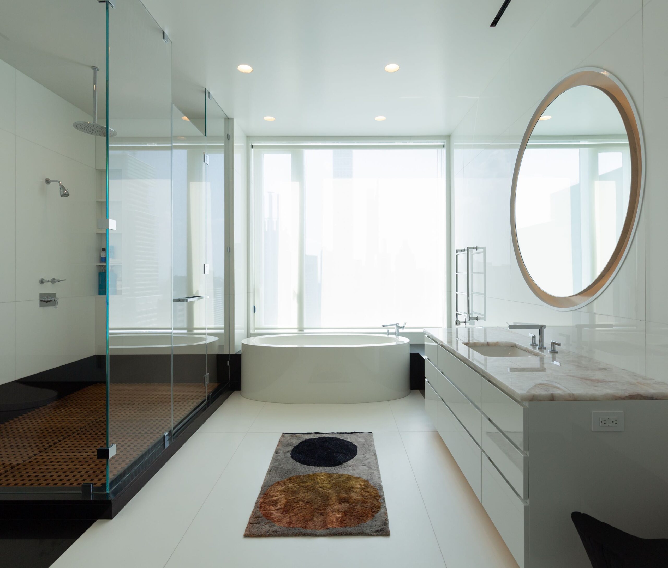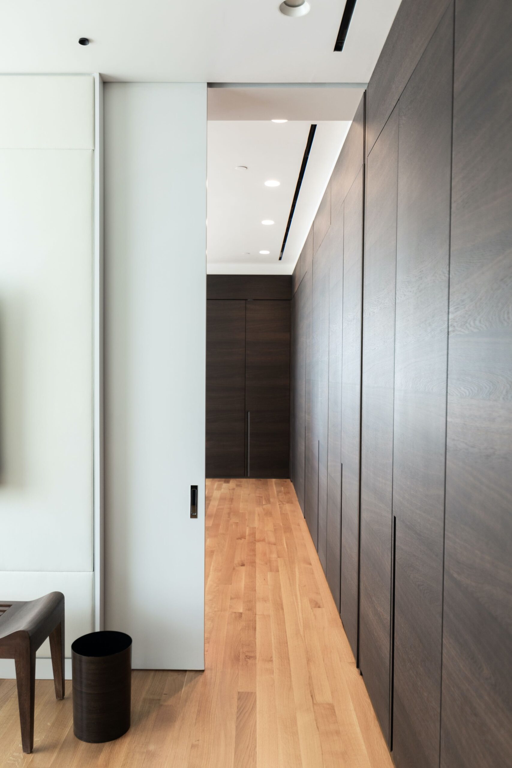On the 52nd floor of a brand new midtown condo, the ‘classic six’ configuration of the condo was too traditional for this retiree. The client asked for a contemporary loft with maximum openness and flow. The result was an expansive two bedroom, open kitchen apartment with a sprawling two-bathroom, master suite boudoir and dressing room.1