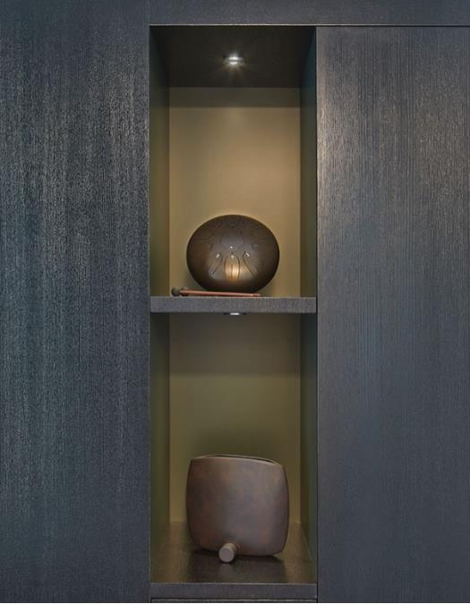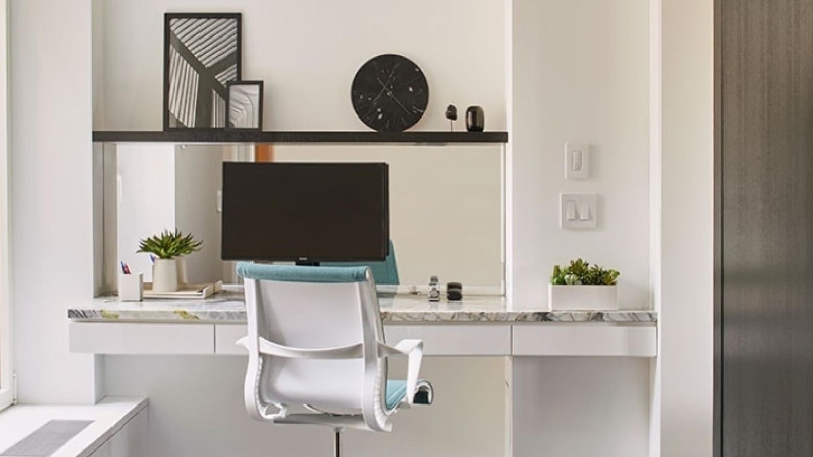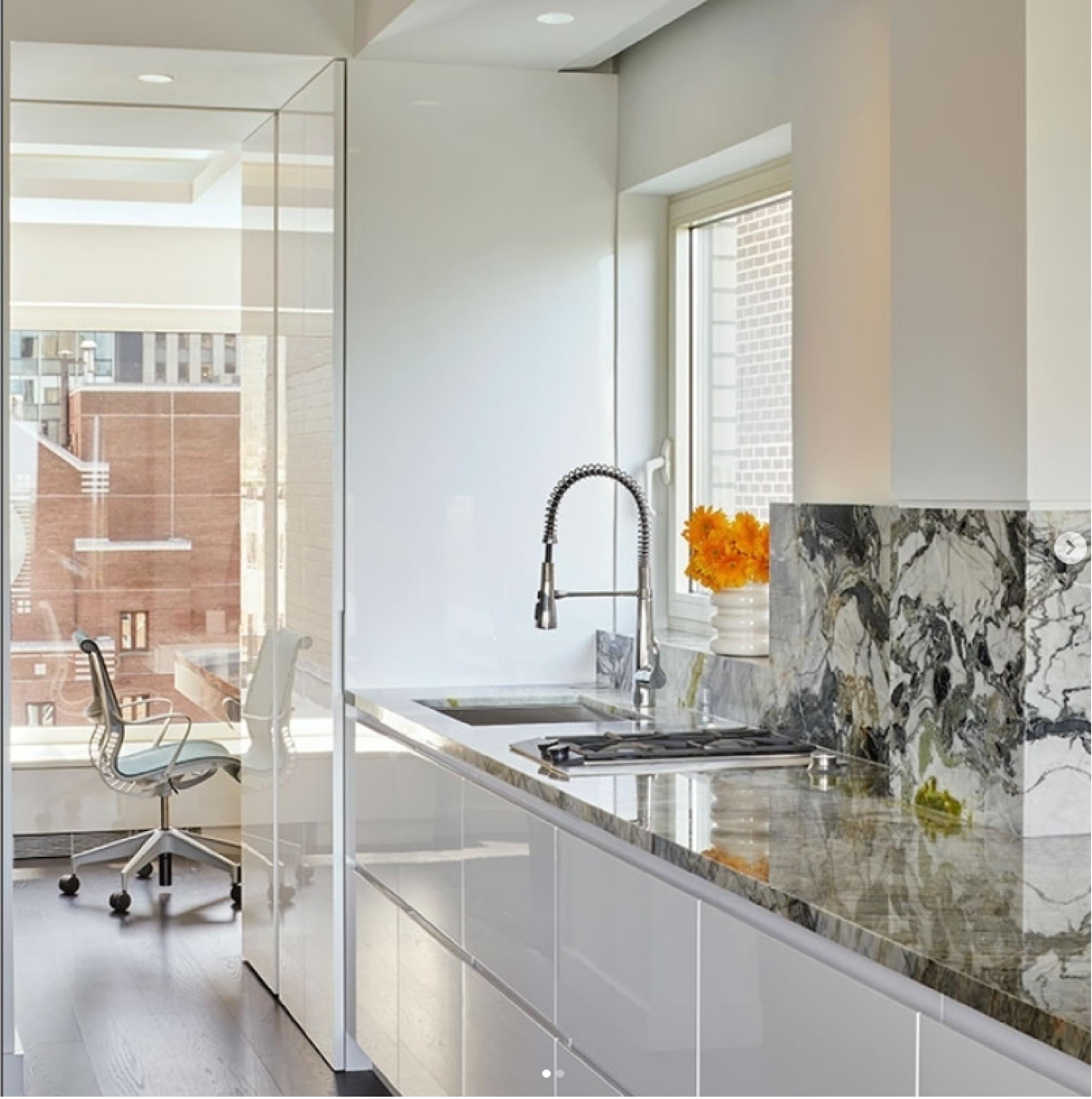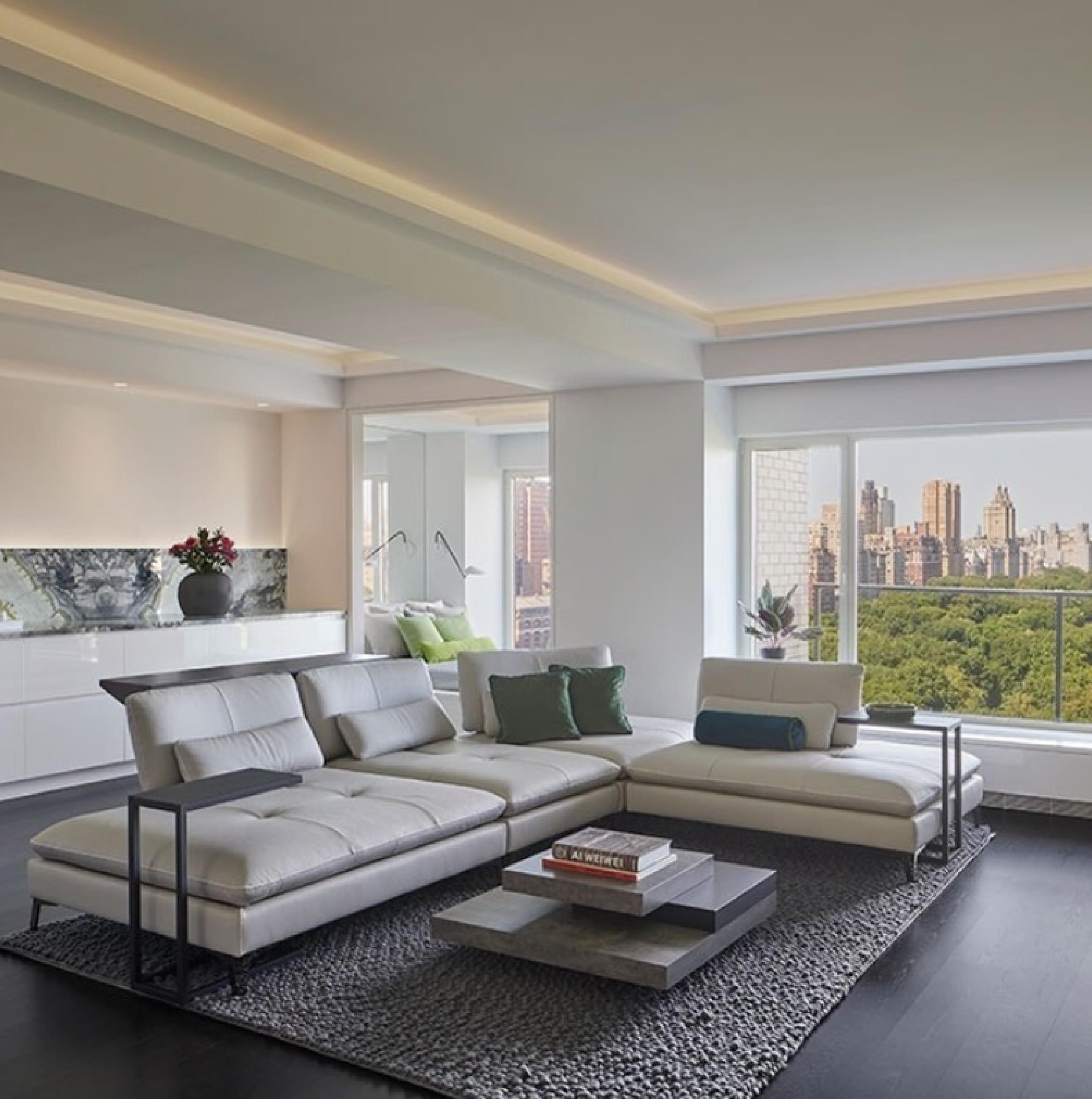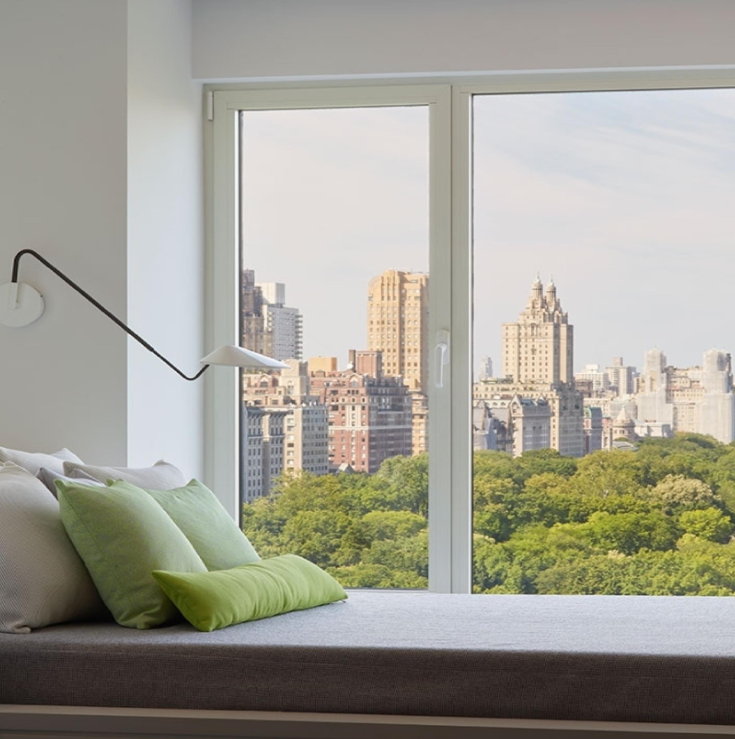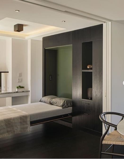 This one bedroom, two bath apartment is designed to maximize openness with a minimalist, tailored aesthetic well-suited to a young bachelor’s life. By utilizing hidden doors, a built-in murphy bed in the office and queen-size daybed overlooking the park, this loft can accommodate all of his guests.1